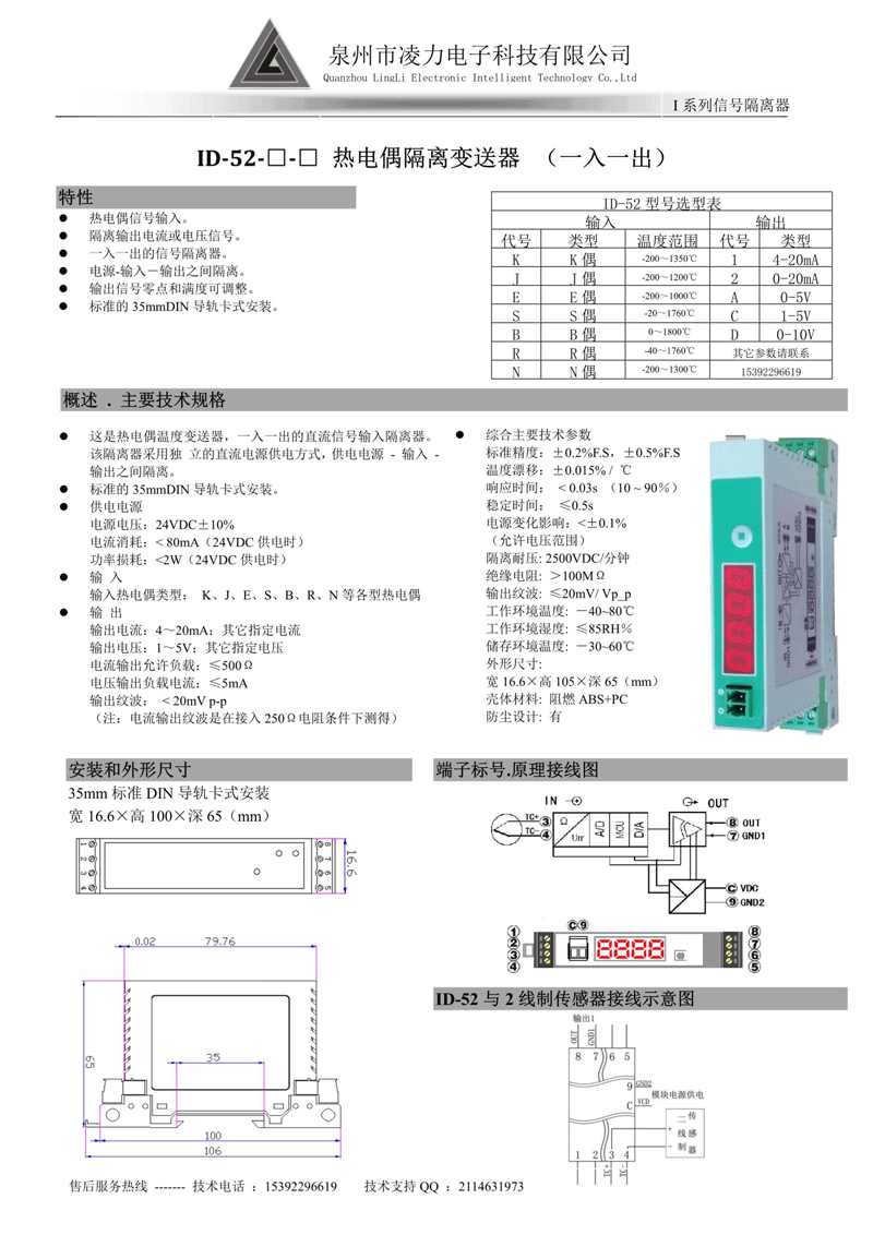 ID-52 熱電偶溫度隔離變送器(一入一出)