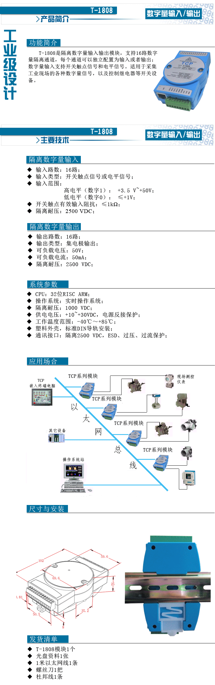 T-1808-16路開關(guān)量輸入輸出模塊